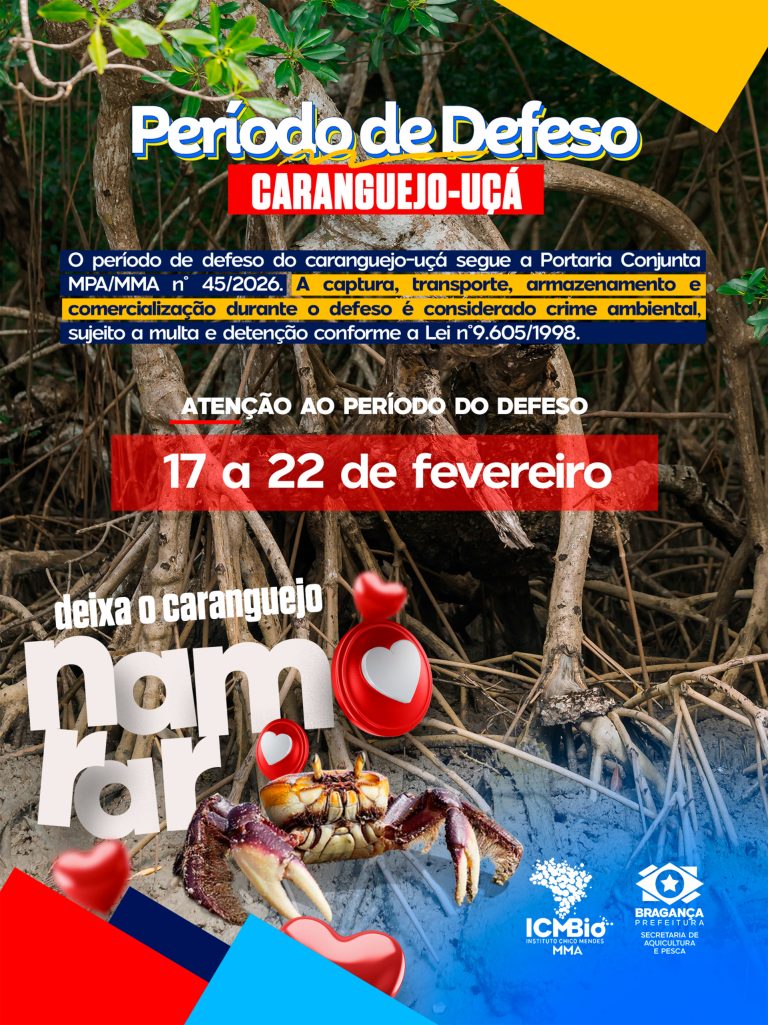 De 17 a 22 de fevereiro, fica proibida a captura, transporte, armazenamento e comercialização do Caranguejo-uçá, conforme a legislação ambiental vigente.